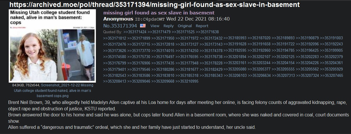 {{{"So where are the pictures and vids. She posted on Quora with a k-nap request and reported she also frequented on KICK BDSM chat groups. Posted on Quora that some pictures of her were being shared on KICK back in October. Agreed to be K-napped in December and when the police came knocking on the Dudgeon Masters front door it became R @PE." | renderPostMessage 82}}}