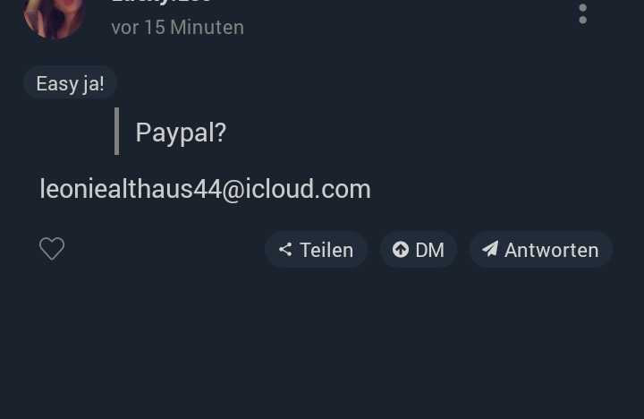 Open file(27.12 KB, 720x468, Screenshot_20220116-153049.png) {{{"Leo verkauft nudes Bezahlung über paypal" | renderPostMessage 7796}}} |