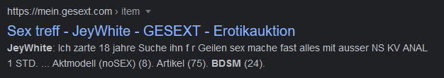 Open file(9.62 KB, 626x111, Unbenannt.png) {{{"Leider nur noch aus dem Google Cache. Aber anscheinend hatte sie wirklich einen fickpartner gesucht.\nDa gibts sicher noch Content.\n\nHat noch jemand was?" | renderPostMessage 34548}}} |