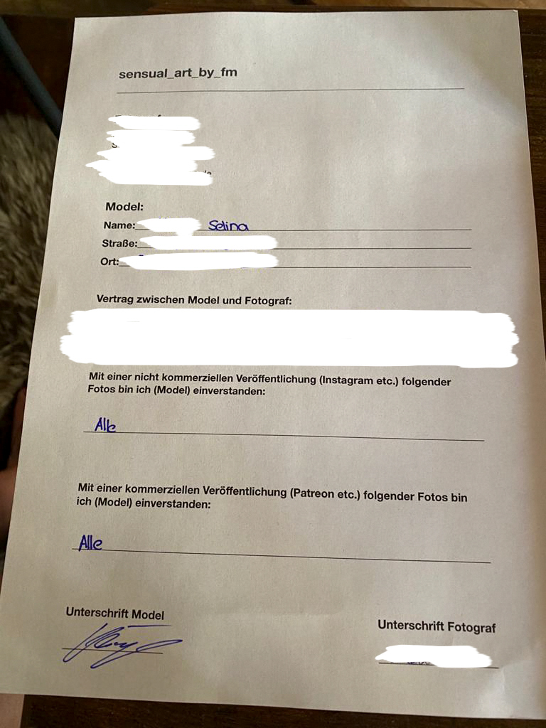 {{{"Der Vertrag ist so überhaupt nicht Aussage kräftig und rechtens. Leicht anfechtbar, denn ja es ist schlau gemacht vom Fotografen. ALLES ohne Auflistung was Alles heißt. Denn den Fotografen einen Lutschen war vorher gar nicht ausgemacht. Spontan wird beim shooting danach gefragt oder Geld geboten xD, schlaue idee . Aber der Vertrag sagt nichts aus . Sonst könntest ja auch beim shooting das Model halb tot schlagen und sagen ja alles erlaubt steht ja Alles geht. Und machst Fotos von une verkaufst sie. SORRY 🤣 das sagt null aus ob dsd model mit jedem Bereich einverstanden war . Oder was besprochen wurde. Genau das ist ja der Grund warum models sich später aufregen . Weil es neben abkommen waren und nicht teil des Vertrages" | renderPostMessage 3550}}} |