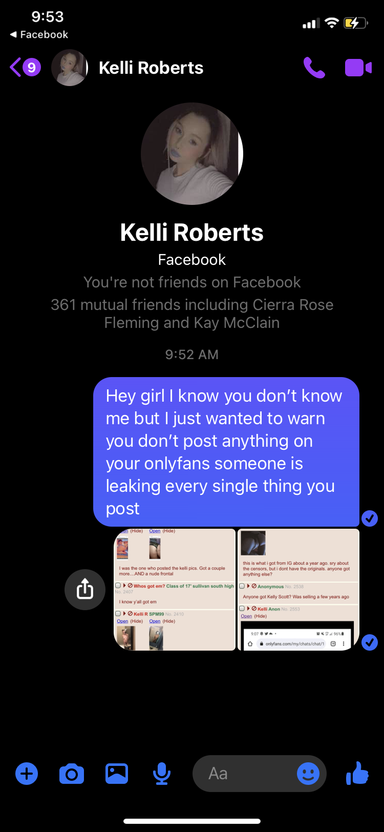 {{{"agreeing with the anon above, Kelli, and any of her friends, shut the fuck up please. If you truly think that just because OF or any other site makes it against their terms of service to screenshot or save content that its just magically safe from that then you really are a disgrace to our species in our current age of technology. When things are uploaded to the internet, or even shared in private message, theryre basically there forever. ever heard of the fappening? That was nudes leaked from private icloud accounts. Youre uploading shit for anyone with a few bucks on a debit card to see. If you didnt want it out there, dont post it." | renderPostMessage 4132}}}
