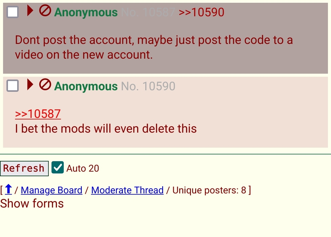 {{{"Dont post the account, maybe just post the code to a video on the new account." | renderPostMessage 10587}}} |